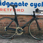 When aerodynamics come into play it is also very important that no power is lost due to the extremes of the rider’s time trial riding position. The Ambrosio Chrono TT frame has a very well studied geometry and sizing to do the job perfectly and allow the competitor, whether he or she is time trialist or triathlete, to ride in a well positioned aerodynamic tuck with no discomfort. The carbon 12k weave fabrication of the main fuselage is also laid out in such a way that no lateral stiffness is lost and full power. Fitted with a SRAM rival groupset and wheels with mavic rims, a great starting point for any Time Trialist.