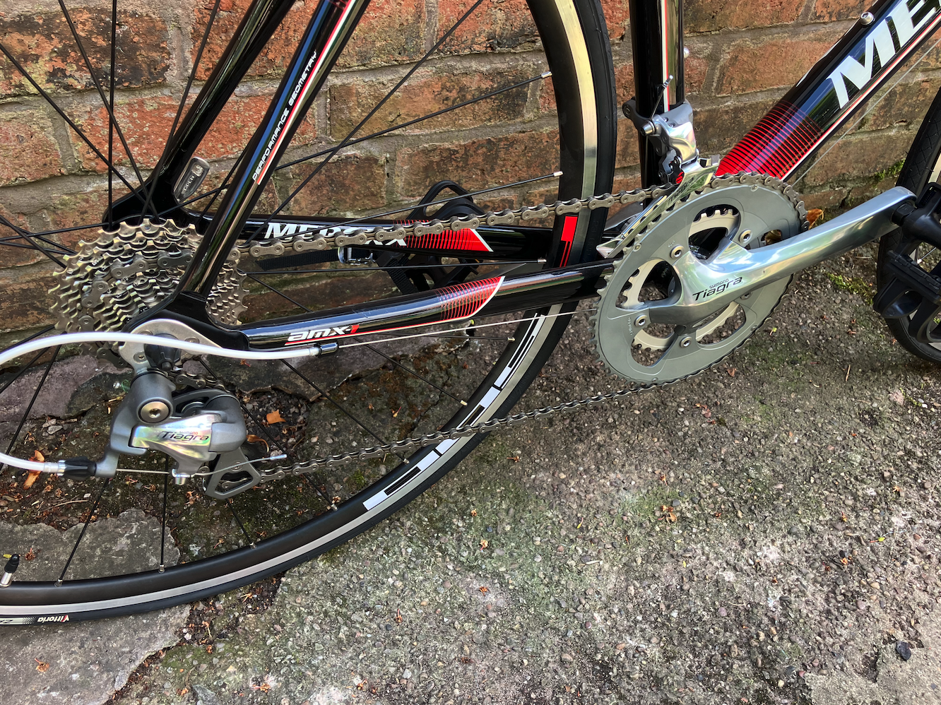 Shimano Tiagra groupset, Shimano R500 wheels, FSA stem handlebars and seat post and a prologo saddle